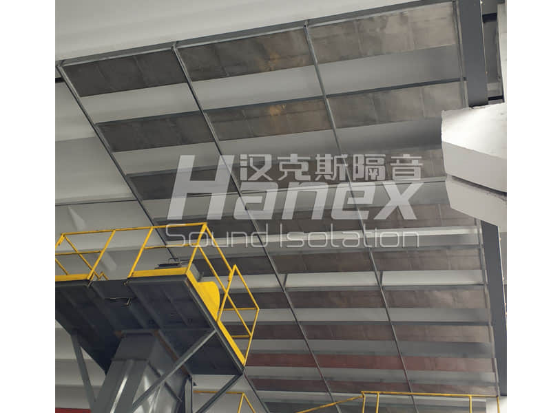 1、經(jīng)杭州漢克斯隔音技術(shù)人員現(xiàn)場踏勘發(fā)現(xiàn),破碎機(jī)生產(chǎn)線工作運(yùn)行時,其產(chǎn)生的噪聲一部分通過屋面繞射至居民區(qū)。因此,在生產(chǎn)車間內(nèi)的破碎機(jī)正上方區(qū)域設(shè)計安裝吸音吊頂。