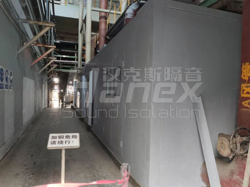 2、設備檢修:為保證設備檢修方便,在過道一側的隔音房上開設4樘防火隔聲門規格: 1700×2050mm,隔音門隔音量>20dB(A)。門上開設觀察窗,方便對設備的日常巡查。觀察窗使用三層夾膠隔聲玻璃,隔音窗隔音量>20 dB(A)。
