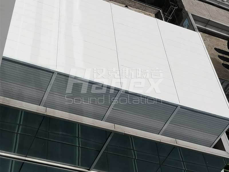 3、為保證冷卻塔的進風量需求,在隔聲罩對應冷卻塔進風口處設計安裝進風消聲百葉,高度為3300mm,深度為300mm。